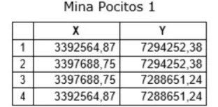 The area of the mines that make up this Project is defined by the following Gauss Kruger Postgar System coordinates.